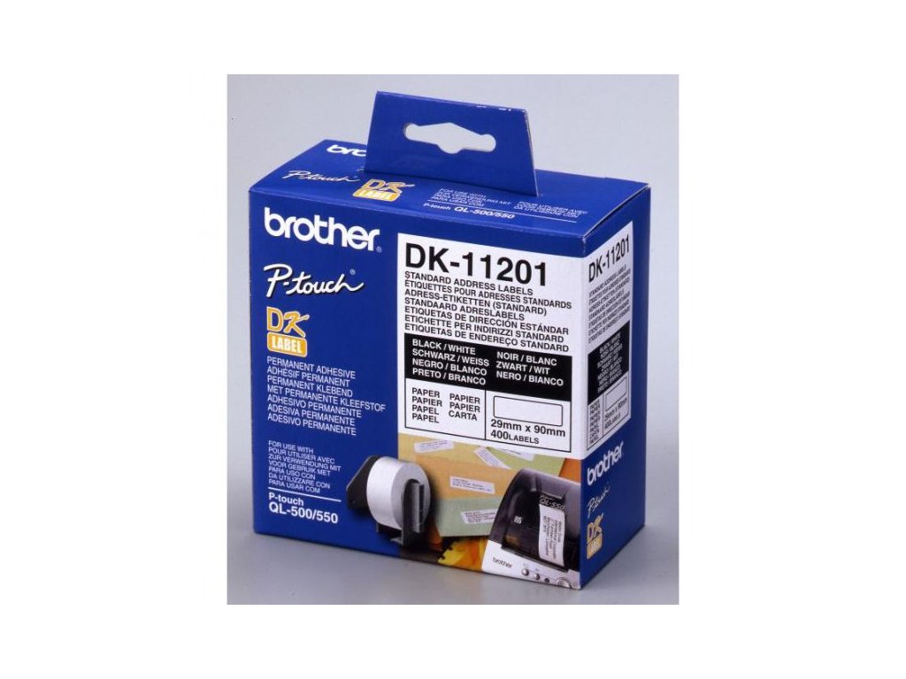 Originální štítek Brother DK-11201 - černá na bílé, 29 mm x 90 mmTyto originální štítky Brother DK-11201 (černá na bílé) jsou užitečné pro širokou škálu vašich obecných požadavků na štítky. Pro použití v domácím i kancelářském prostředí mohou být tyto přednastavené standardní adresní štítky použity k tisku log, čárových kódů, vizitek návštěvníků nebo informací o přepravě.