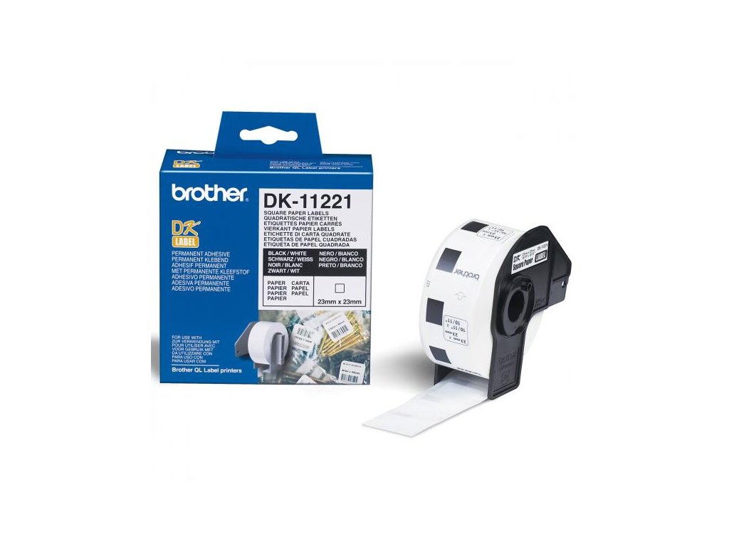Originální štítek Brother DK-11221 - černá na bílé, 23 mm x 23 mmTyto originální štítky Brother DK-11221 (černá na bílé) jsou užitečné pro širokou škálu vašich obecných požadavků na štítky. Pro použití v domácím i kancelářském prostředí mohou být tyto přednastavené standardní adresní štítky použity k tisku log, čárových kódů, vizitek návštěvníků nebo informací o přepravě.