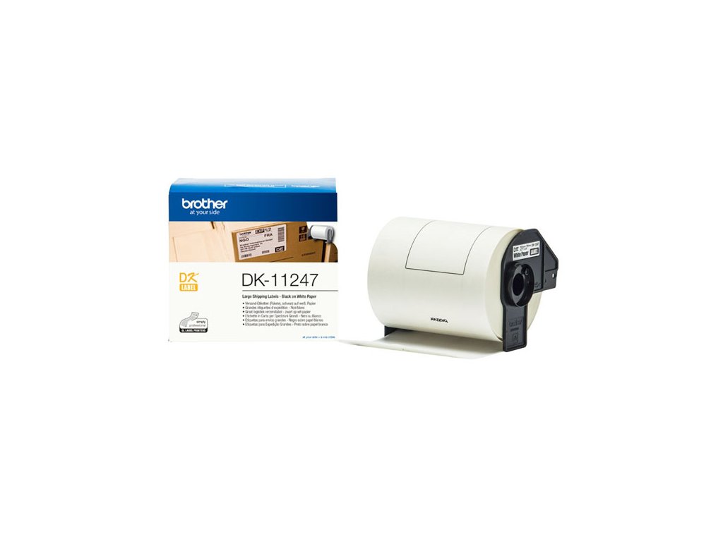 Originální Brother DK-11247 - černá na bílé, 103 mm x 164 mmTyto originální štítky Brother DK-11247 černá na bílé jsou užitečné pro širokou škálu vašich požadavků. Pro použití ve skladech i v kancelářských prostředích mohou být tyto velké přepravní štítky použity k zobrazování log, čárových kódů, odznaků návštěvníků nebo informací o přepravě.