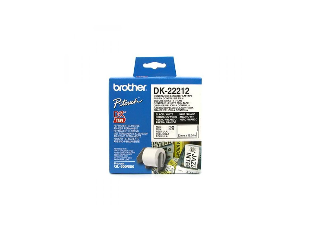 Originální Brother DK-22212 kontinuální filmová role - černá na bílé, 62 mmPerfektní pro vytváření dočasných poznámek v různých tvarech a velikostech, model DK-22212 byl vyvinut tak, aby vám poskytoval tvůrčí svobodu při výrobě specializovaných zakázkových štítků, a to se snadným odřezáním na požadované rozměry.