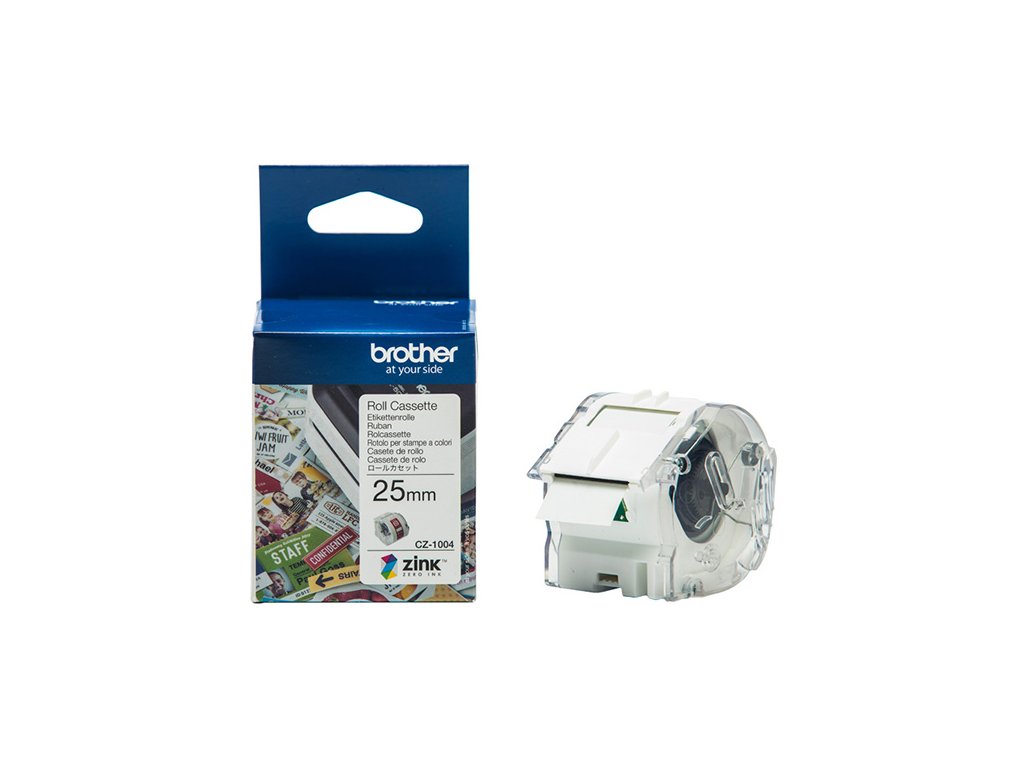 Originální barevná kontinuální tisková role Brother CZ-1004, šířka 25 mm.Originální role štítků Brother CZ-1004 o šířce 25 mm a délce 5 m vám umožňuje tisknout plně barevné štítky pro širokou škálu potřeb značení. Ideální pro použití v kanceláři nebo v domácnosti k identifikaci spisů, krabic, polic, osobních věcí nebo jiných důležitých předmětů.