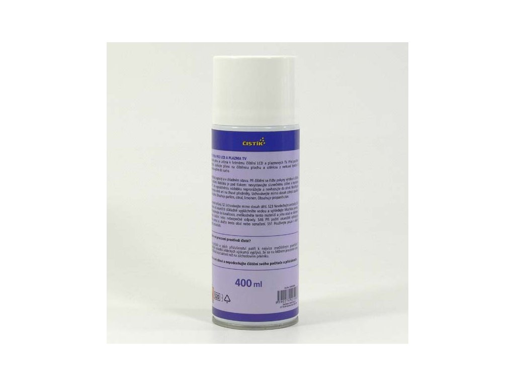 Antistatická pěna je určena k šetrnému čištění LCD a plazmových TV. Před použitím protřepejte. Pěna efektivně odstraňuje již vzniklé znečištění, antistatický účinek zároveň brání dalšímu usazování nečistot. Čistěte přístroj vypnutý a ve vychladlém stavu. Při čištění se řiďte pokyny výrobce k čištění daného zařízení.Doplňkové parametry
