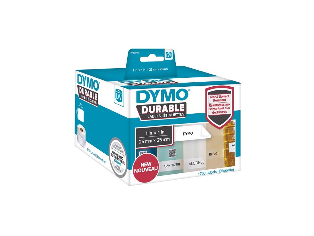 Odolné štítky LW DurablePokud chcete používat štítky v náročných podmínkách, zvolte odolné štítky LW Durable, které jsou pevnější a odolnější než standardní papírové štítky. Štítky DYMO LabelWriter Durable obsahují silné průmyslové lepidlo a odolají odlepení a otěru, ke kterému dochází působením vlhkosti a rozpouštědel.